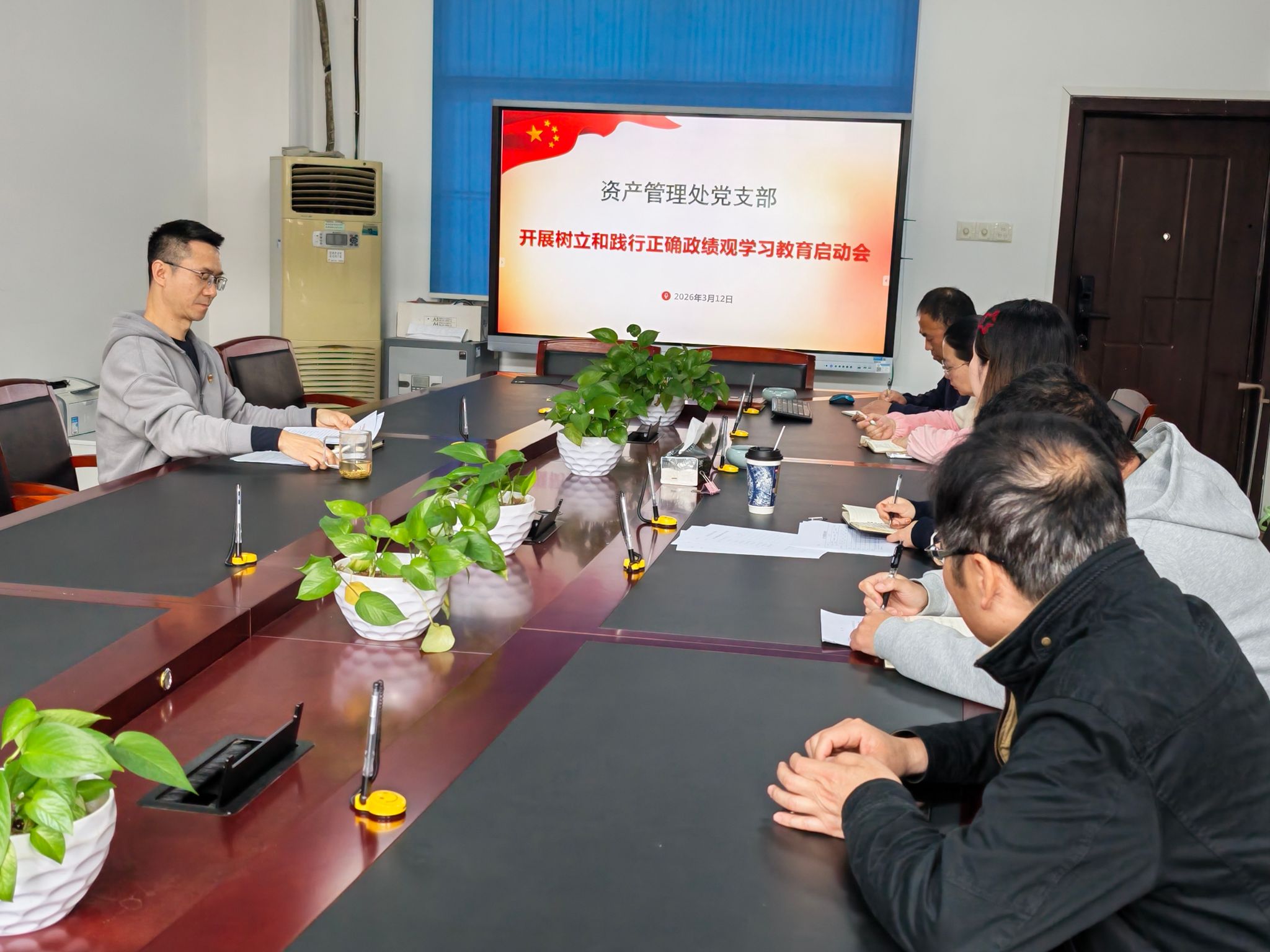 2026年3月12日下午,资产管理处(采购与招标管理中心)党支部在博德楼B514,召开树立和践行正确政绩观学习教育启动部署会。支部全体党员参加会议,会议由党支部书记朱强主持。